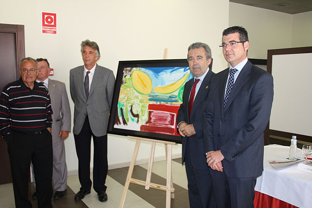 El titular de Agricultura y Agua presentó hoy el cartel anunciador de las Fiestas del Melón de Torre Pacheco 2009, que se celebran desde hoy al 30 de mayo, acompañado del alcalde de Torre Pacheco, Daniel García Madrid, el presidente del Consejo Regulador de la Indicación Geográfica Protegida Melón de Torre Pacheco, Juan Peñalver Pardo y el autor del cartel, el pintor murciano Antonio Martínez Mengual.