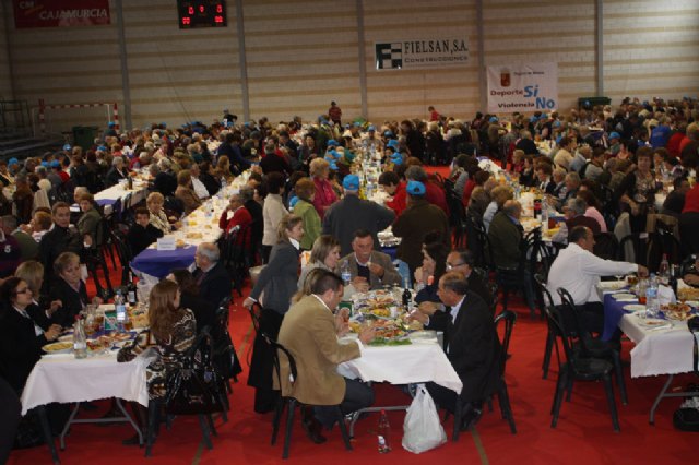 Unas mil personas asistieron ayer en el polideportivo municipal de Roldán, en Torre-Pacheco, a la XXVI Jornada de Convivencia de Mayores, presidida por el consejero de Política Social, Mujer e Inmigración, Joaquín Bascuñana, el alcalde de Torre-Pacheco, Daniel García Madrid; la alcaldesa de Fuente Álamo, María Antonia Conesa; la directora gerente del Instituto Murciano de Acción Social, Isabel Sola; la directora del Centro Social de Mayores de Roldán, Gabina Roca, junto concejales de los distintos municipios de la comarca.