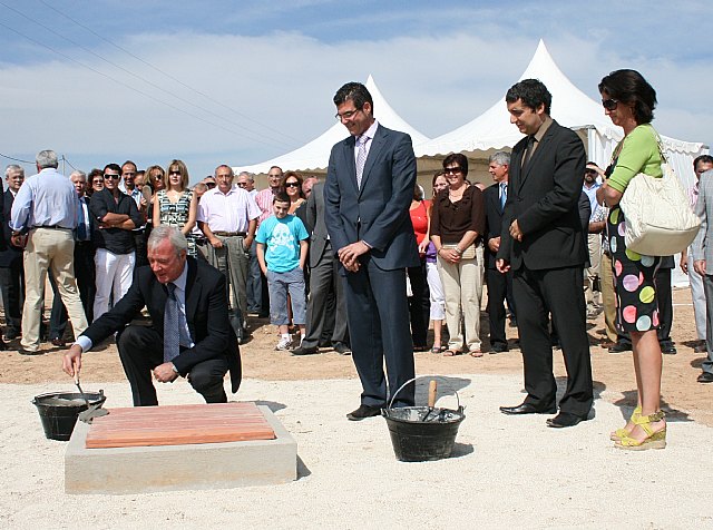 El presidente de la Comunidad Autónoma de Murcia, Ramón Luis Valcárcel, acompañado por el consejero de Cultura y Turismo, Pedro Alberto Cruz, y el alcalde de Torre Pacheco, Daniel García Madrid, colocó hoy la primera piedra del Museo de Paleontología y Evolución Humana de la Región de Murcia, ubicado en el término municipal de Torre Pacheco.