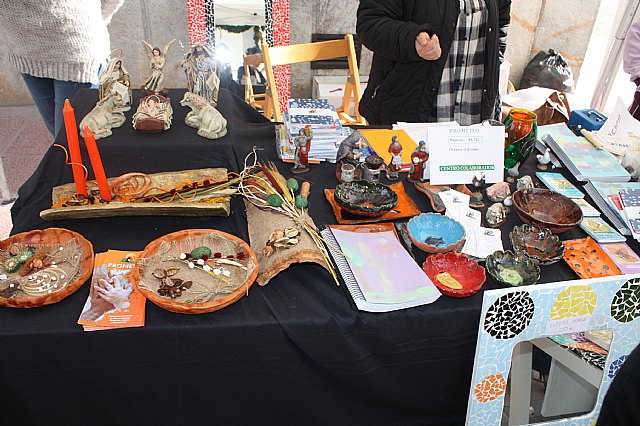 Esta mañana el Alcalde de Torre-Pacheco, Daniel García Madrid ha visitado el stand de Navidad que la Asociación Prometeo (Asociación de Padres de Discapacitados Físicos, Psíquicos y Sensoriales) ha organizado por tercer año, en el que se podrán encontrar artículos de artesanía realizados por los usuarios del Centro ocupacional (mosaicos, cuadros, fieltro, agendas, tarjetas de navidad, velas, centros de navidad...).