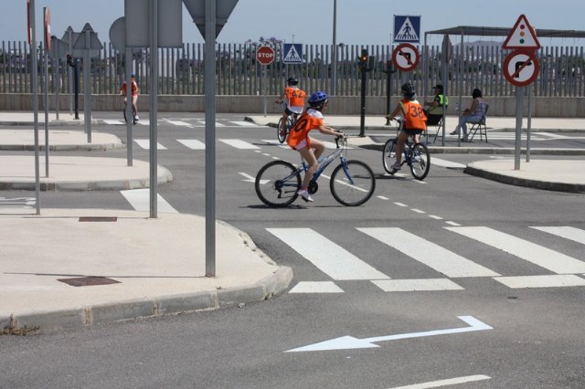 Posteriormente, los parcipantes se dirigieron al Parque Infantil de Tráfico, situado en el mismo recinto, y han desarrollado la parte práctica, consistente en circular correctamente por dicha instalación conduciendo una bicicleta, debiendo cumplimentar una tarjeta itinerario con 8 puntos de control, y debiendo pasar por dos pruebas de habilidad, un paso estrecho de 0,50 metros de ancho y 12 metros de largo; y un slalom compuesto por 8 conos, que deben ser sorteados uno a uno sin tocarlos ni derribarlos, en un tiempo máximo de 8 minutos.