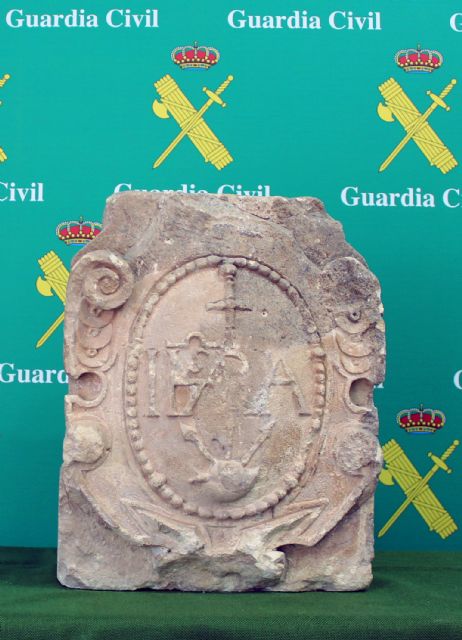 La operación 'CLAVÍCULA' ha culminado con la recuperación de un escudo heráldico, de origen eclesiástico, catalogado como Bien de Interés Cultural (BIC), que ha sido trasladado y depositado en el Archivo Intermedio dependiente del Museo Arqueológico de Murcia.