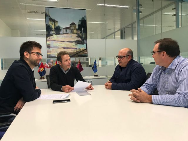 El alcalde de Torre Pacheco, Antonio León y el concejal de Comunicación, Carlos López, reciben en el Ayuntamiento a Ramón Martínez López, presidente de la Asociación de nueva creación "Peña Gastronómica BH" y a Mariano García  miembro de la directiva.