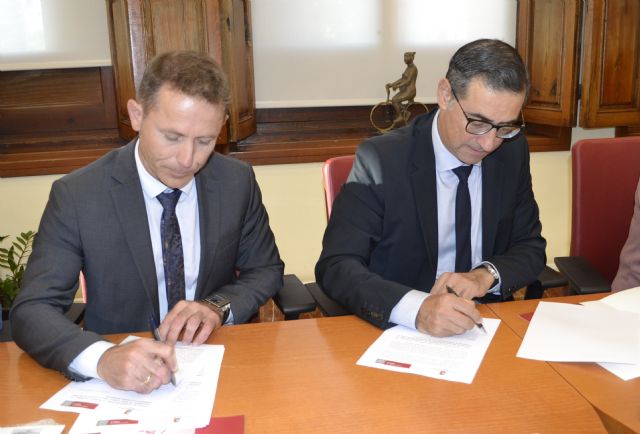 La Universidad de Murcia y el Ayuntamiento de Torre Pacheco han firmado este miércoles un convenio para crear una sede permanente de extensión universitaria en el municipio. El alcalde de Torre Pacheco, Antonio León Garre, y el rector de la UMU, José Luján Alcaraz, han rubricado el acuerdo por el que la institución docente tendrá una presencia activa en el desarrollo de actividades educativas, culturales, deportivas y sociales en la localidad.