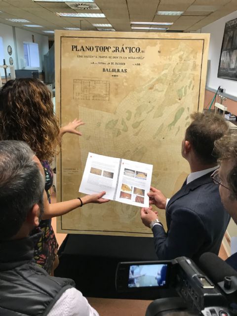 El director general de Bienes Culturales, Rafael Gómez, entregó al alcalde de Torre Pacheco, Antonio León, el “Plano Topográfico de la hacienda de D. Francisco Melgarejo”, datado el 30 de abril de 1872,  tras ser restaurado en el Taller de Restauración del Archivo General de la Región de Murcia.