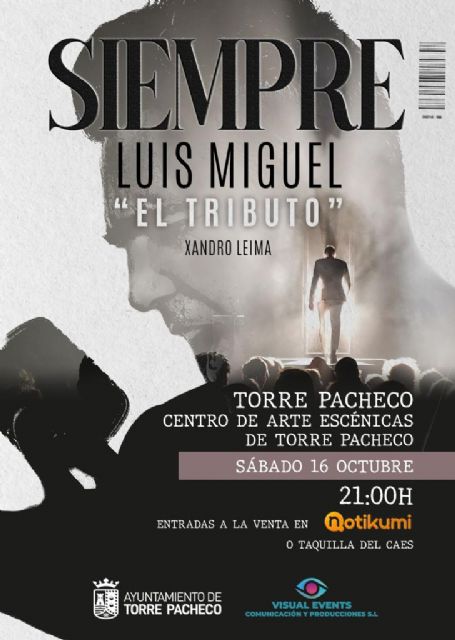 “Siempre Luis Miguel el Tributo” homenaje romántico y elegante al astro mexicano Luis Miguel, el sábado 16 de octubre en el Centro de Artes Escénicas. Un espectáculo con sus grandes éxitos, boleros como “Por debajo de la mesa”, “Nosotros”, “No sé tú”, temas pop como “Suave”, “Tú solo Tú”, baladas, “Entrégate” y rancheras como “La Bikina”, “Si nos dejan”, entre otros grandes éxitos. Un espectáculo con una banda completamente en vivo, junto a la voz de Xandro Leima.