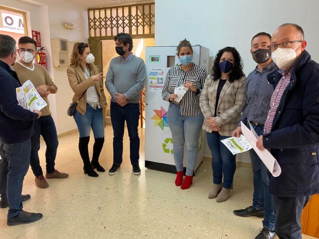 Los ecopuntos obtenidos al depositar los envases en la máquina, que está situada en el vestíbulo previo al bar de la Casa de la Radio, serán canjeados por COEC Torre Pacheco, por cheques descuento.