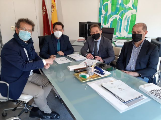 El alcalde de Torre Pacheco, Antonio León Garre, junto con el concejal de Cultura y Turismo, Raúl Lledó Saura y el presidente de la Peña Flamenca Melón de Oro, Mariano Escudero Roca, han mantenido su primera reunión con el nuevo Sr. Director General de las Industrias Culturales y de las Artes de la Región de Murcia, Manuel Cebrián López, en la sede del ICA del auditorio Víctor Villegas de Murcia.