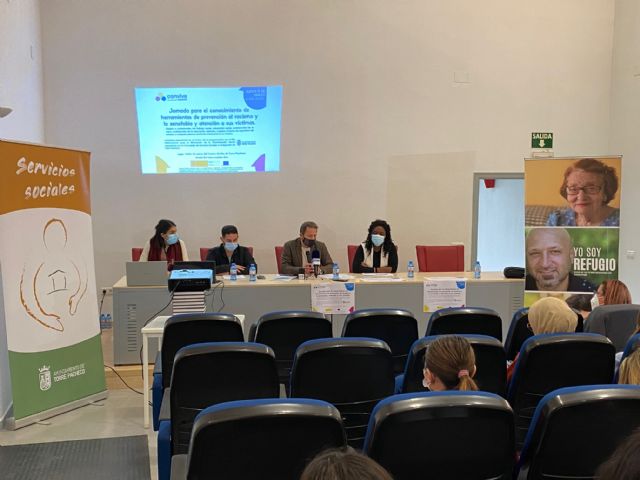 La Actividad presentada en el marco de la programación por el Día Internacional para la Eliminación de la Discriminación Racial organizada por la Concejalía de Servicios Sociales del Ayuntamiento de Torre Pacheco, ha contado con la asistencia del alcalde de Torre Pacheco, Antonio León y con la intervención de los Técnicos del programa REDES en la Región de Murcia, Elisa Ebesi, Pedro Guirado y Sandra Sánchez.