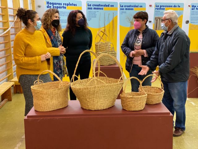 Los esparteros muestran su trabajo en esta exposición que cuenta con varios paneles informativos, así como con objetos realizados íntegramente con esparto como cestos, objetos decorativos y bisutería.
