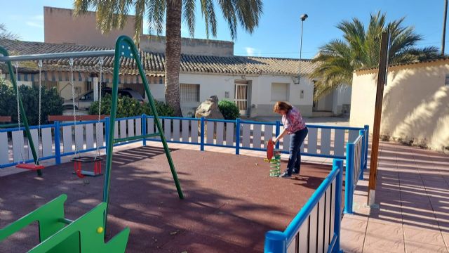 Como ha comentado la Concejal de Parques y Jardines, Mari Carmen Guillén, los trabajos han consistido primero en la retirada de juegos y pavimento existente en la anterior ubicación incluida la gestión de dichos residuos conforme a normativa vigente para después realizar el montaje de la nueva zona infantil en la plaza del pueblo. Una zona infantil que cuenta con columpio de doble asiento uno plano y otro cuna y dos muelles uno individual de fútbol y otro doble en forma de barquito, todo ello colocado sobre 50 m2 de suelo de loseta de caucho roja de 40mm de espesor y totalmente vallado para que los más pequeños puedan jugar de forma segura.