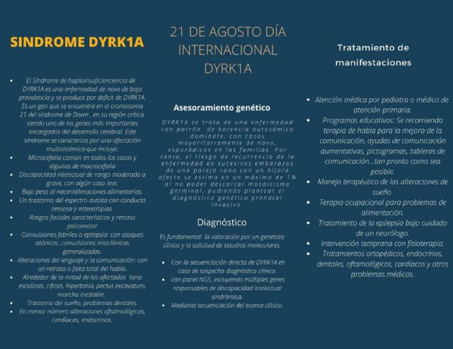 Esta enfermedad que afecta a 600 familias a nivel mundial, 22 familias a nivel nacional, de las cuales 2 de ellas se encuentran en el municipio de Torre Pacheco está de enhorabuena por su reciente constitución como Asociación Española de Síndrome DYRK1A el pasado 19 de enero de 2022. La asociación está formada por familias de niños afectados con este síndrome con sede en el municipio de Torre Pacheco (Murcia), y tiene representación en otras Comunidades Autónomas tales como Madrid, Andalucía y Cataluña. El objetivo de dicha Asociación es la investigación y la visibilización de esta enfermedad ultra rara tan desconocida a día de hoy.