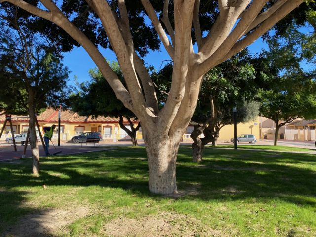 La primera teniente alcalde y concejala de Parques y Jardines, Mari Carmen Guillén Roca, junto a miembros de la Corporación Municipal ha visitado las obras de remodelación y adecuación que se han realizado en la Plaza Ramón González Pardo en el Barrio de San Antonio, de Torre Pacheco.