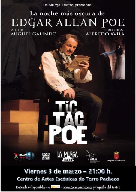El Club de Lectura de la Biblioteca de Torre Pacheco contará con el director de la obra “La noche más oscura de Edgar Allan Poe Tic, Tac, Poe..”, Alfredo Ávila, y con el actor principal  José María Bañón, el próximo martes, 28 de febrero a las 18.30 h, en la Biblioteca Pública Municipal..