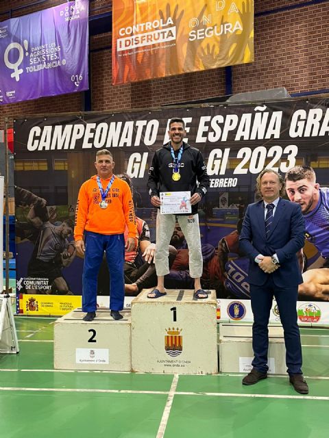 Por cuarto año consecutivo, el agente de la Policía Local de Torre Pacheco Pablo de Gorriño Jiménez se alza con el Campeonato de España de Grappling en las dos modalidades, "gi" y "no gi" para veteranos, organizado por la Federación Española de Lucha y desarrollado este fin de semana en Onda (Castellón). Se trata de tipos de lucha (grappling, sambo, lucha libre, judo y jiujitsu) en las que se somete al contrario con diferentes técnicas de control, proyección o finalización sin golpear al oponente, tan solo mediante el agarre, estrangulación y luxación de las extremidades del rival.