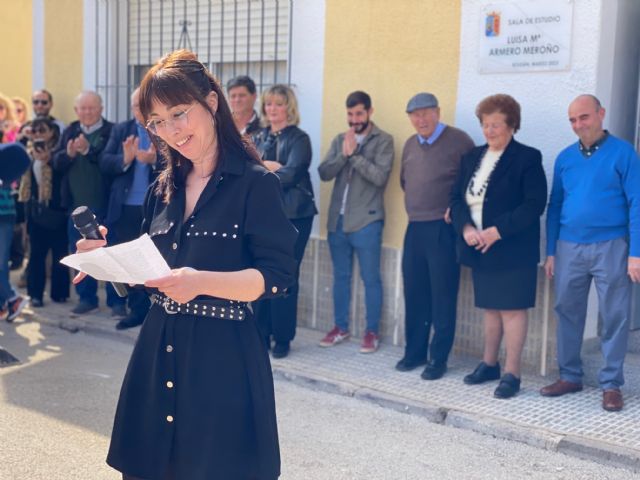 El alcalde de Torre Pacheco, Antonio León, acompañado por autoridades municipales, familiares, amigos y vecinos, hicieron un reconocimiento el pasado domingo 5 de marzo a Luisa María Armero Meroño, durante el acto de denominación de la Sala de Estudio de la Biblioteca “Miguel Hernández” de Roldán
