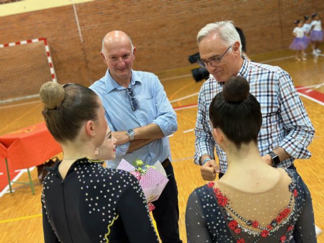 El alcalde de Torre Pacheco, Pedro Ángel Roca y el concejal de Deportes, Pedro Baró asistieron a la Exhibición de la Escuela de Gimnasia Rítmica, transmitiendo el orgullo que para el municipio supone el contar con estas gimnastas que llevan el nombre de Torre Pacheco por toda la geografía nacional, poniendo en valor la implicación de las gimnastas y destacando la labor de las entrenadoras.