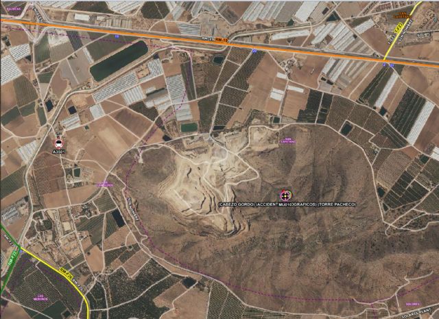 Una llamada al 1-1-2 Región de Murcia realizada por el mismo senderista, un hombre de 50 años acompañado de su hijo de 14 años, indicaba que había sufrido una torcedura de tobillo en la entrada de una de las cueva del Cabezo Gordo (zona muy escarpada), situada en la parte alta de la falda del monte cercana a la cantera. Inmediatamente se ha dado salida al helicóptero de la Dirección General de Seguridad y Emergencias, con el Grupo de Rescate Aéreo de Especialistas del Consorcio de Extinción de Incendios y Salvamento de la Región de Murcia (CEIS), al mismo tiempo que se desplazaba una unidad sanitaria asistencial de la Gerencia de Urgencias y Emergencias Sanitarias 061. También se ha informado a Policía Local de Torre Pacheco y Guardia Civil.