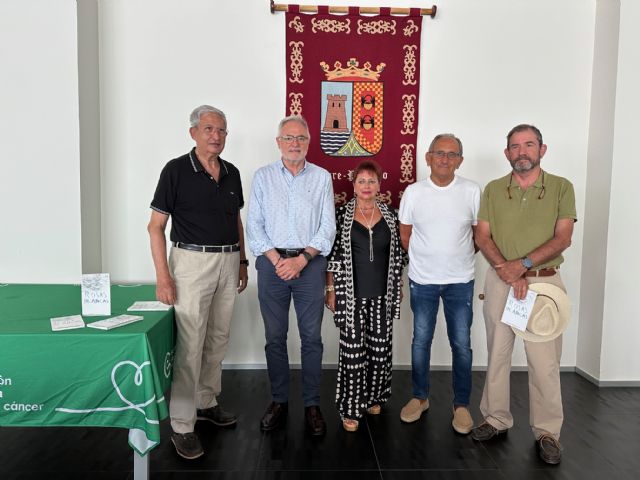 Antonio Martínez realizó la entrega de 1.000 euros, dinero recaudado desde la presentación del libro el pasado 1 de junio, en un acto en el Ayuntamiento, que contó con la presencia del alcalde de Torre Pacheco, Pedro Ángel Roca, el presidente de la AECC de Murcia, Manuel Molina, el vicepresidente, Eduardo González, y la presidente de la Junta Local de Torre Pacheco, Encarna Nieto.