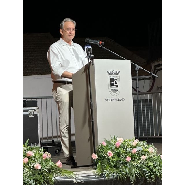 San Cayetano disfrutó de un emotivo Pregón a cargo de Simón Conesa Albaladejo, natural de la localidad, y persona muy querida por todos los vecinos, que llenaron la plaza de la Iglesia el pasado sábado 20 de julio, para arropar a su pregonero.