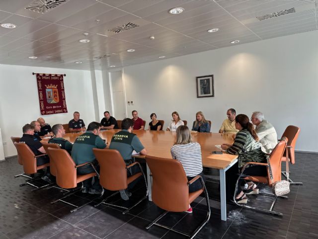 El alcalde de Torre Pacheco, Pedro Ángel Roca, junto con la concejal de Seguridad, Charo Sánchez y el concejal de Festejos, Pedro Baró, mantuvieron una reunión de coordinación con las fuerzas de seguridad para coordinar el dispositivo que asegure unas fiestas sin altercados para vecinos y visitantes.