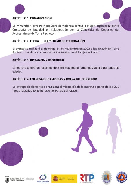 El próximo domingo 24 de noviembre se llevará a cabo la “IV Marcha Solidaria: Torre Pacheco libre de violencia contra la mujer”.