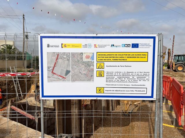 Avanzan las obras de desdoblamiento del colector de saneamiento de Los Olmos, que evitarán desbordamiento de agua en la zona.
