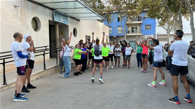 El Centro de Salud Este de Torre Pacheco ha acogido esta mañana la salida de la 4ª etapa del reto "Correcaminos Feliz", transitada principalmente por el área VIII de Salud de 33 kilómetros y de la Caminata saludable "Pon un abanico en tu vida", 4 kilómetros a un ritmo de paseo.