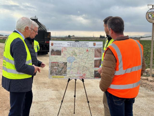 El Gobierno regional está ultimando las obras de acondicionamiento y mejora de los caminos rurales que dan acceso a Las Pedreñas de Hortichuela y Los Urreas, en el término municipal de Torre Pacheco.