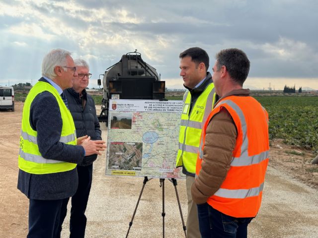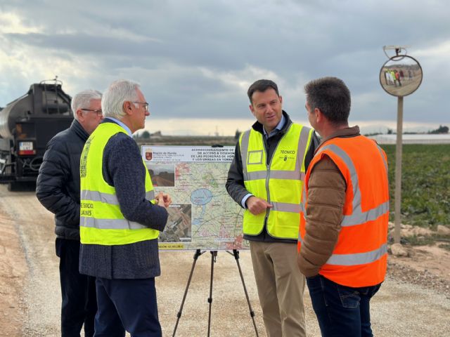 El director general del Agua, José Sandoval, visitó la zona junto al alcalde de Torre Pacheco, Pedro Ángel Roca, para supervisar el avance y tramo final de los trabajos.